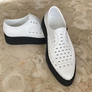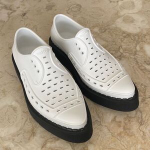A lightweight take on the iconic George Cox creeper – transforming the customary stitching of the classic creeper into a breathable perforation pattern. The Native Shoes Diano collab with George Cox is a fun and comfortable unisex shoe.