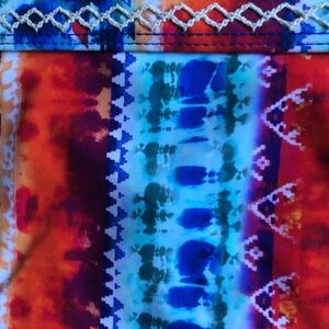 Brand new bikini bottoms for sale, size extra large, colouring orange and blue boho pattern. New without tags. 82% nylon and 18% spandex.