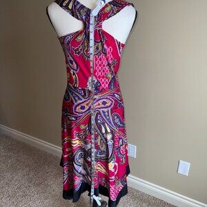 Colors: Pink with swirls and designs in multiple colors. Black hem.