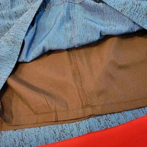 George womans mini skirt blue/black fabric lined Black elastic used as waist band size 10 Length 21 waist 15 hips 19
