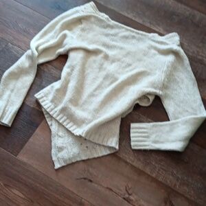 cream knit deep v-neck sweater with flattering overlapping hip/waist area
