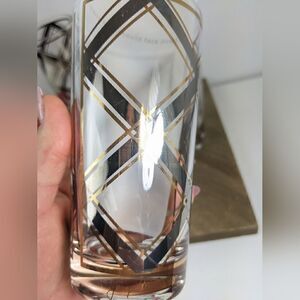 Stunning Georges Briard cocktail glasses with gold and silver Criss cross plaid pattern.