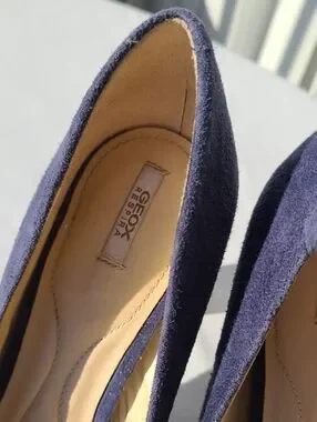 Blue suede super comfortable Geox size 9 heels. In good condition.