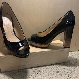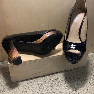 Geox Black Pantent Italian Leather Cork Platform Shoes