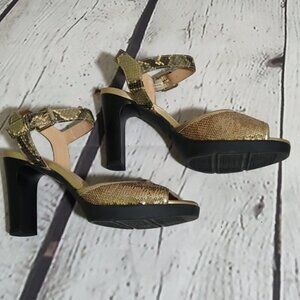 Gold Sequin Snakeskin Open Toe D ANNYA High Sandal GEOX