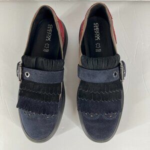 Geox Kaula Blue Brown Red Suede Fringe Chunky Oxford Sneaker Shoes Sz 38 EU