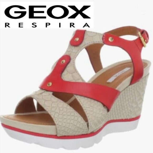 Geox Red Sophie Colour Block Sporty Wedge Respira Sandals