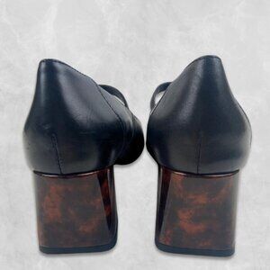 ● Unique tortoiseshell-inspired block heel