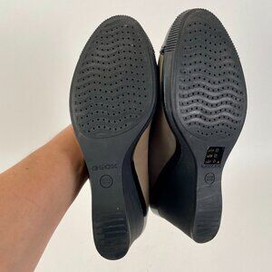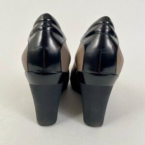 Geox Respira Spectator Pump Wedge Heels, Black/Tan Leather, Size 9.5