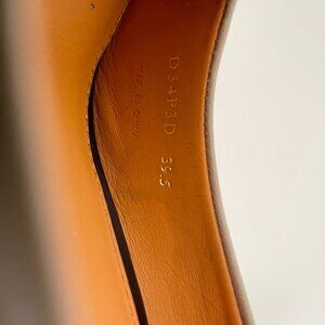 Amazing pair of super comfortable spectator-style wedges in a deep mushroom/tan with black accents at the toe and heel. The wedge is 3.5 inches high, but the padded insole makes them so comfy they feel like you're wearing slippers. Such an amazing colour combination for Fall -- these will elevate any outfit.