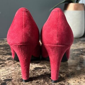 Geox Respira red suede heels are in immaculate condition. Worn twice, no longer have the dress that matches these.
