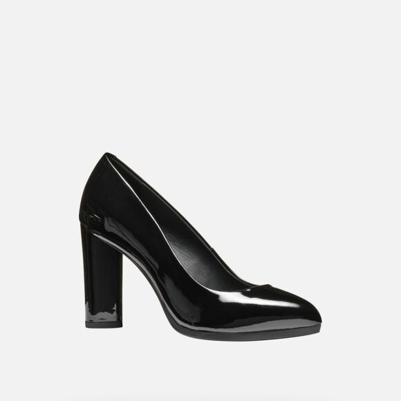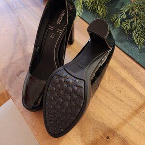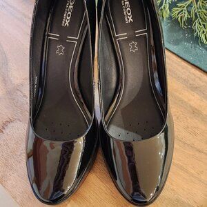 Never worn Geox Walk Pleasure 90 Pumps in black patent leather. Very comfortable shoes that offer arch support for office wear and can be walked in. They go from day to night easily as they can be dressed up or down.