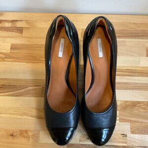 Geox Women’s Black Leather Wedge Shoes | Size 41 Round Toe Comfortable Stylish