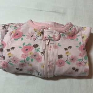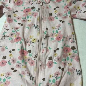 Charming Gerber one piece with floral design. Includes matching hat. Soft and cozy for little ones.