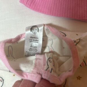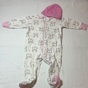 Gerber - Pink and White Bunny Print Footie Sleeper for babies w/ hat
