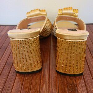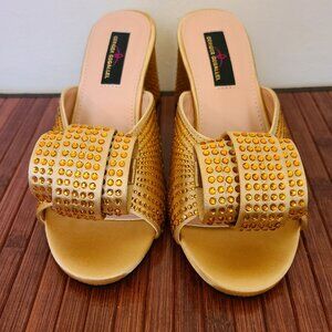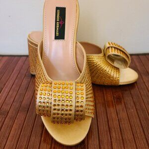 Step out in style with these elegant gold wedge sandals. Perfect for any occasion, these shoes offer both comfort and glamour.