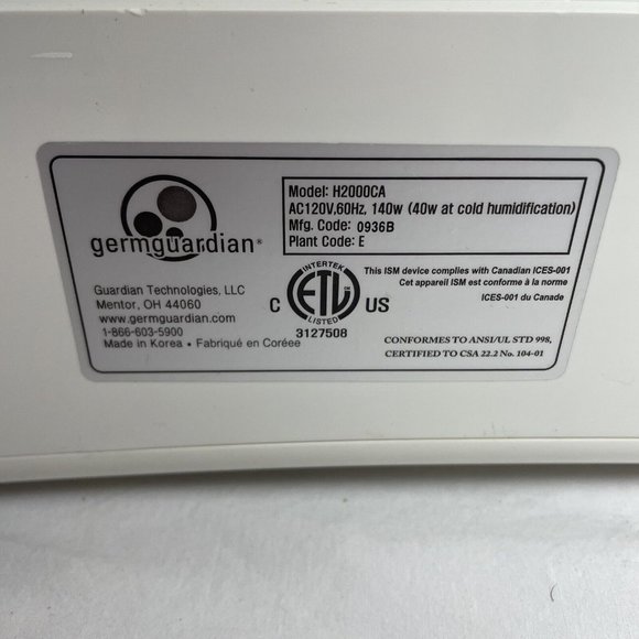 Germ Guardian H3000 Warm Cool Mist Ultrasonic Humidifier TESTED