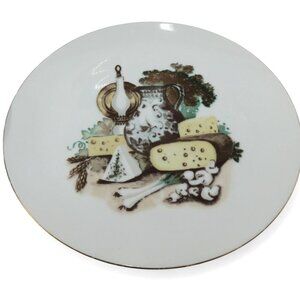 German Democratic Republic KAHLA Cheese and Wine PLATE Set 7 Piece Porcelain VTG