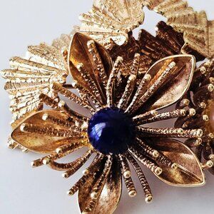 German Rolled Gold Lapis & Gold Vintage Brooch