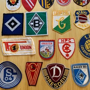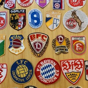 38 original Vintage soccer team patches, all original from Germany, collected from 1985-1991