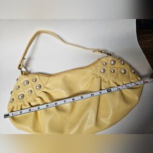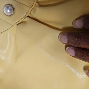 Gerolamo Soft Butter Yellow Dumpling with Faux Large Pearl Accents Bag. Includes shoulder strap. Synthetic. Single strap. Italy.