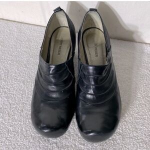 Gerry Weber Black Leather Slip on Ankle Booties W Low Chunky Heel 41