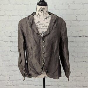 Gerry Weber Cinch Sleeves Buttoned Front Blazer Top Linen Brown Bronze FR 42 M