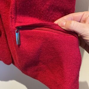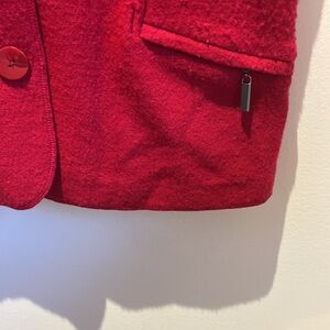 Nice lightweight warm wool beautiful vest. Gently previously worn. Pockets on the front both have zippers with elegant pulls.