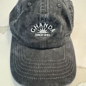 Chic charcoal denim cap by Ghanda. Embroidered front logo.
