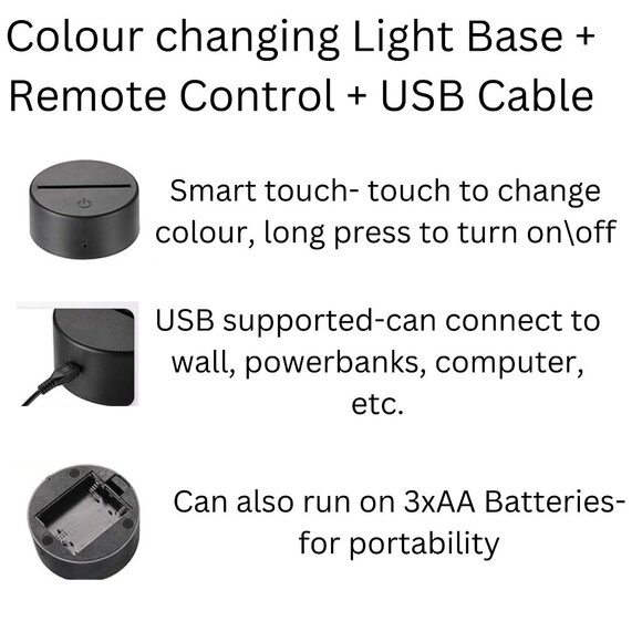 Lamp Base Battery: USB power or 3x AAA batteries (NOT Included)
