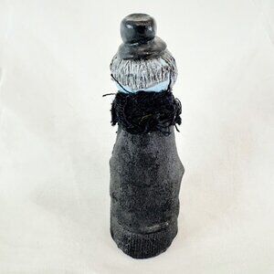 A one of a kind sculpture by artist Ghoul Friday. He has a big green eye, a detailed moustache, a black top hat light blue coloured face. H His cloak has crevices and a light texture. There may be some light dust in the crevices. The black scarf is intentionally frayed. The bottom is marked Ghoul Friday 2015. It measures approx. 6.5 inches tall. He is a sweet monster to add to your Halloween collection.