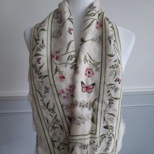 NWT Size 52" x 52" (133 cm x 133 cm). Soft and flowy scarf with little flower and butterfly motives. Perfect for spring!