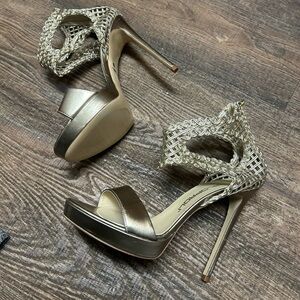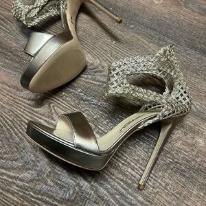 Giancarlo Paoli 9.5 NWOT ultra lux Gold with tiny silver hue stilettos