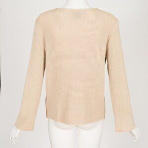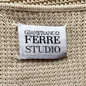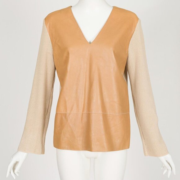 Gianfranco Ferré 1990s Vintage Beige Leather & Knit V-Neck Sweater Top