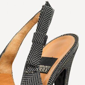 Gianfranco Ferre Silver & Black Metallic Herringbone Slingback Heels