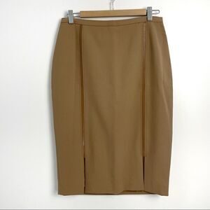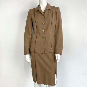 Gianfranco Ferre Tan Wool Blend Leather Trim Skirt Suit Sz 8