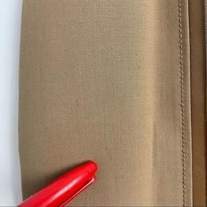 Gianfranco Ferre 2 piece skirt set in tan with faux crinkle leather detail . Both blazer and skirt are size 8 US.