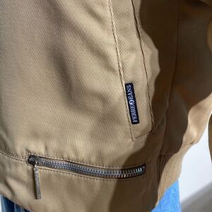 Authentic Gianfranco Ferre aviator style Bomber jacket in very good preowned condition. Full front zipper (Lampo), snap tab at collar, removable faux fur collar, two front slip pockets plus a small zippered pocket, ribbed cuffs and back waist, fully lined.