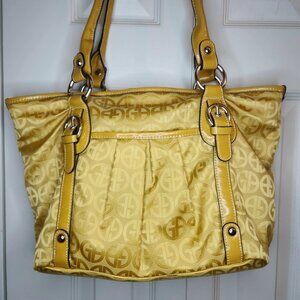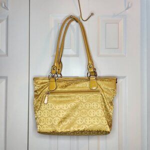 Giani Bernini tote, gold handbag, yellow purse, GB logo bag, faux leather tote, vegan leather handbag, monogram shoulder bag, work tote, travel purse, large everyday bag, designer-inspired bag, women's fashion accessories, statement tote
