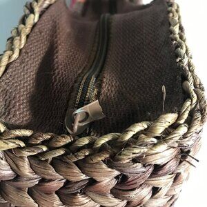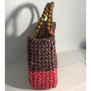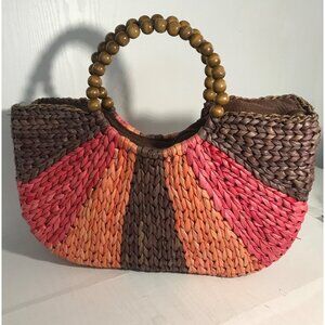 Giannetti Woven Handbag Cornhusk Wooden Beaded Handles Multicolor Stripes Lined
