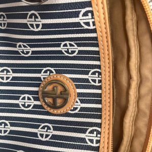 Grey and brown women bag. Perfect condition, never used. Features pebbled faux leather with the GB signature stripe. Brown and grey with white stitching and silver hardware
