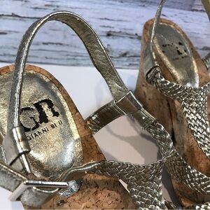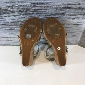 Gianni Bini Gold Wedge Cork Platform Strap Sandals Heels Size 8