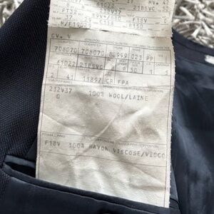 It is dark navy in color, there are tone-on-tone striped bands. 1 button is missing at the front. The buttons are Medusa heads.