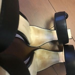 These show wear on soles and inside heel bed, and significant wear/markings on the leather of the stiletto heels. Upper leather is still in good condition.