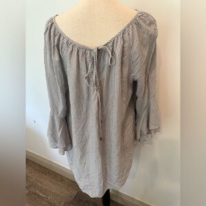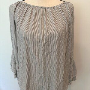 Gibson Latimer Striped Blouse Oversized Large Tie back Layered Sleeves