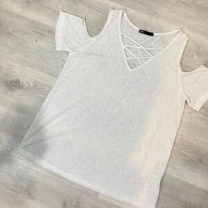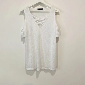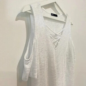Gibson Sheer Cold-Shoulder Snow White Knit Tank Top Size M