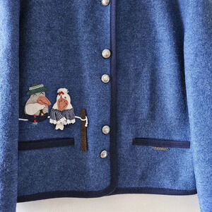Giesswein Virgin Wool Grandmacore Boho Cardigan Retro Sweater Blue Size US 10.