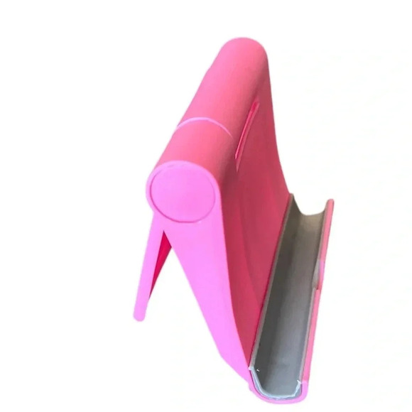 Compact smartphone support, different degres. There is a silicone part for adhering. Plastic for the other part of the item.