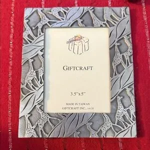 Add a touch of the wild to your home or office with this stunning vintage Giftcraft pewter-toned picture frame. This frame features a beautiful, dense raised relief (3D) pattern of giraffes and tropical leaves that covers the entire border.
