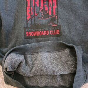 This grey Gildan hoodie is adorned with playful "Snowboard Club" graphics.